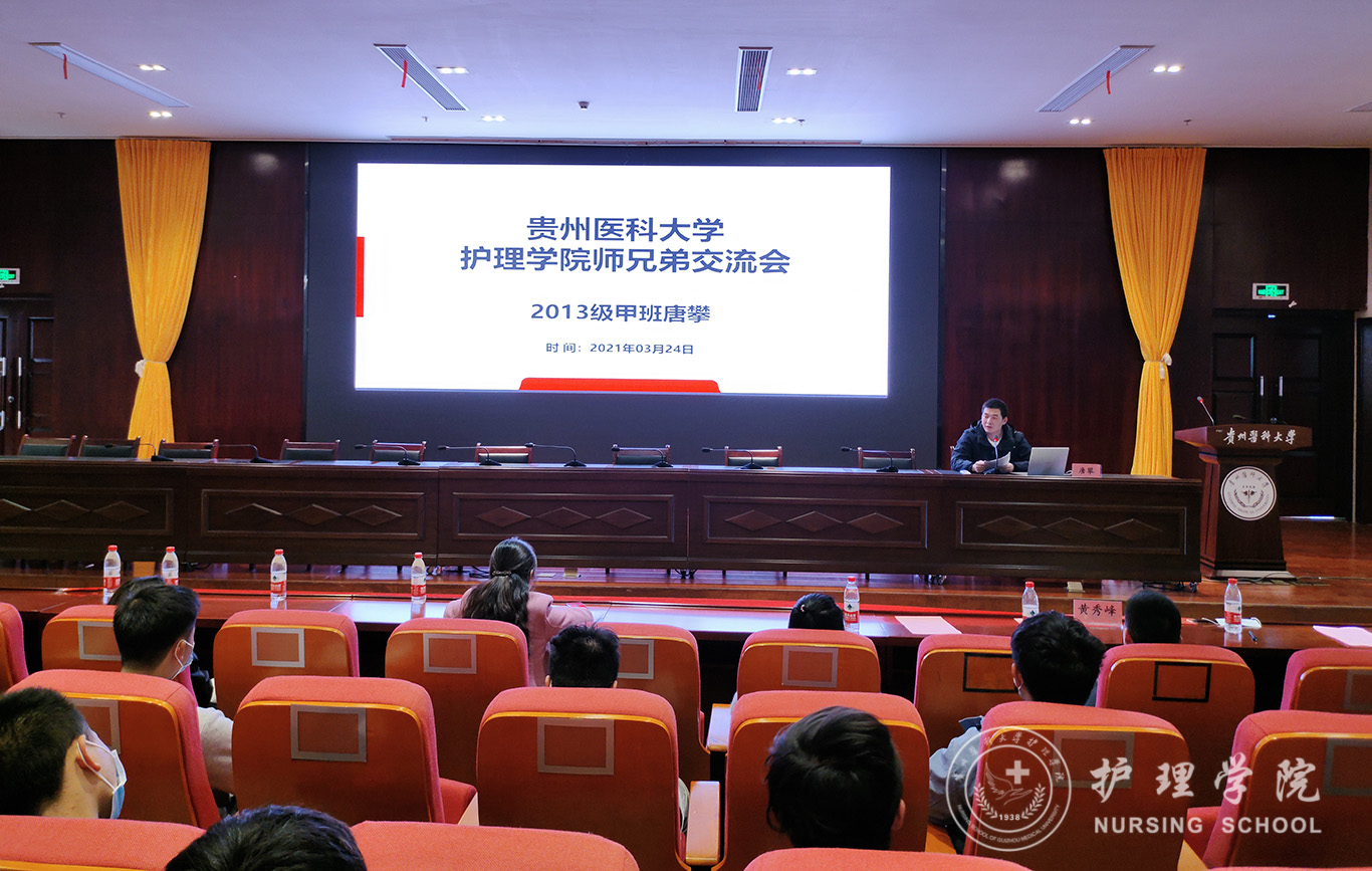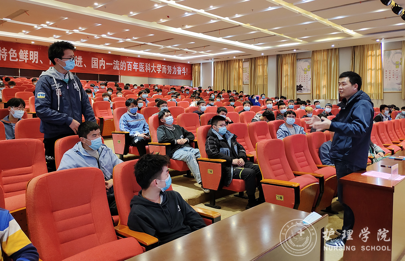 3月24日,为庆祝中国共产党成立100周年,弘扬红色经典,共庆抗疫胜利,稳定男护生专业思想,太阳成集团tyc234cc在南校区道德讲堂开展了“男丁格尔”员工事迹分享交流大会,会议由太阳成集团tyc234cc团委主办,男护生协会组织进行并邀请了2013届优秀员工黄秀峰、2017届优秀员工唐攀主讲。太阳成集团tyc234cc正科级组织员曾敏老师、员工科副科长毕丽老师、员工第三党支部书记刘妍老师以及2019-2020级全体男同学参加了此次会议,会议由太阳成集团tyc234cc员工科副科长毕丽老师主持会议。