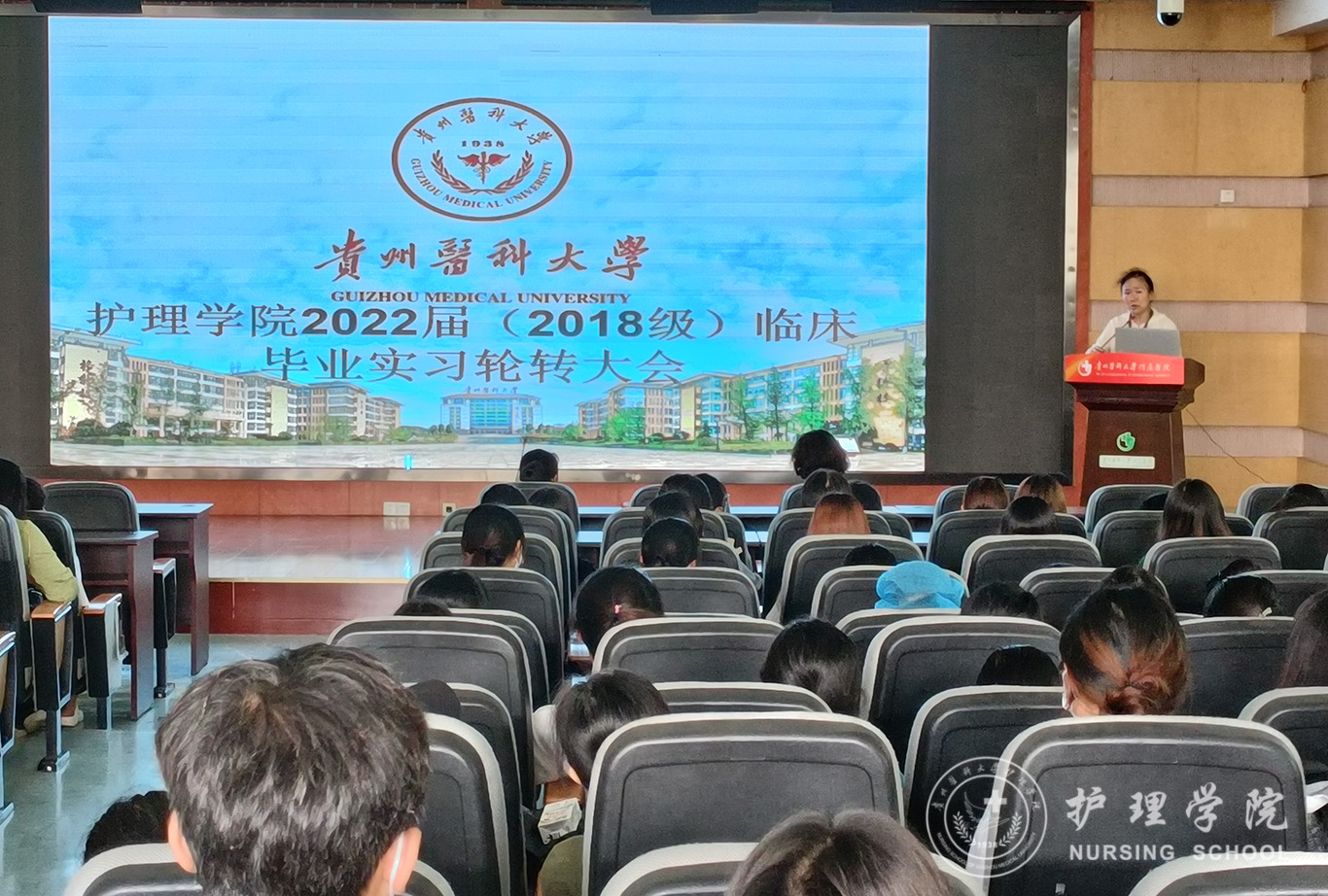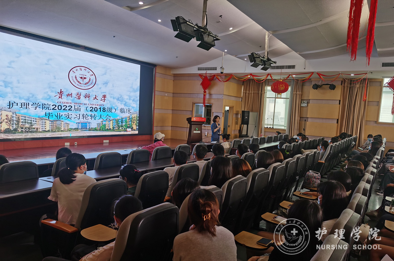 9月17日,在太阳成集团tyc234cc附属医院急诊四楼会议室召开2022届(2018级)临床毕业实习轮转会,太阳成集团tyc234cc经理李亚玲、副经理刘志燕、辅导员李杏春老师及在贵阳市各实习医院的实习生参加会议,会议由生产实习科科长柳忠燕主持。