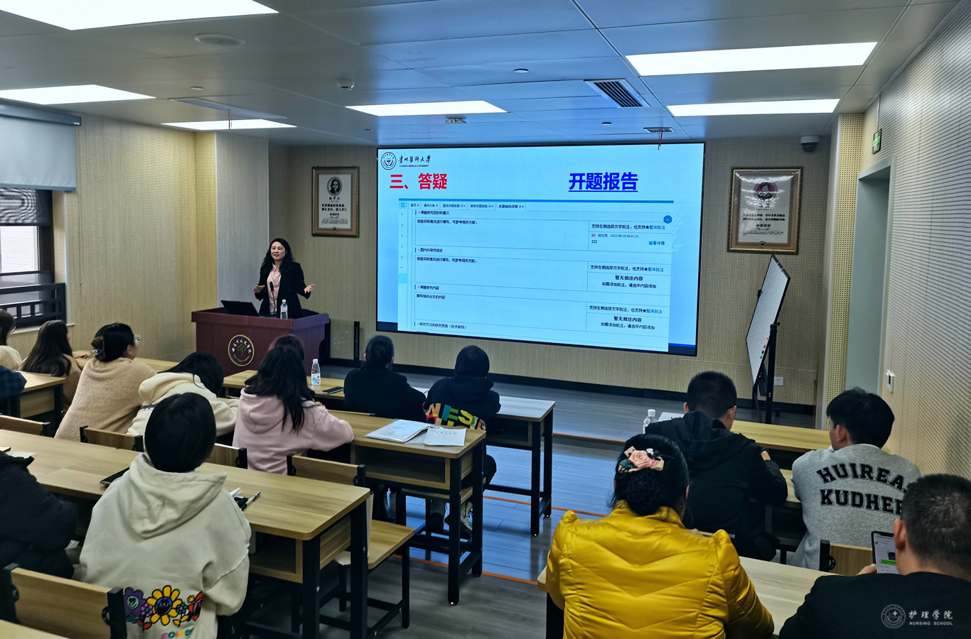 在本次巡回教学及教学督导中,巡回教学组对实习基地实践教学运行常态进行了督查指导,还进行了课堂听课、教案的书写培训。重点对本科生毕业论文(设计)工作方案进行了解读,对护理科研论文、综述及个案报告的撰写、论文系统操作等进行了详细培训,就师生在毕业论文(设计)与系统操作中存在的问题进行逐一解答,并广泛征集师生关于毕业实习大纲修订的相关意见建议。同时召开实习师生座谈会,听取带教老师和实习员工的意见建议,了解员工实习及带教情况,并对员工就业进行了指导。