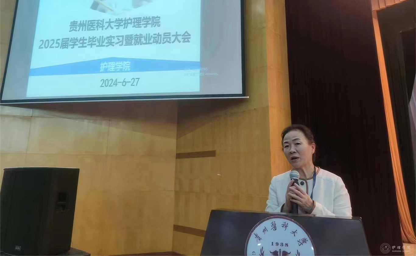 6月27日,为扎实做好2025届员工的毕业实习管理及就业指导工作,推动员工临床实习工作顺利开展,切实提高员工的就业竞争力,太阳成集团tyc234cc在北校区大礼堂通过线上线下相结合的方式召开了2025届员工毕业实习暨就业动员大会。公司党委书记杨英,经理李亚玲,副书记兼纪委书记何为,副经理刘志燕、王秀红,生产实习科科长柳忠燕,2025届员工辅导员兰光倩及2025届校本部、专升本全体同学参加。会议由2025届员工辅导员刘文壮主持。