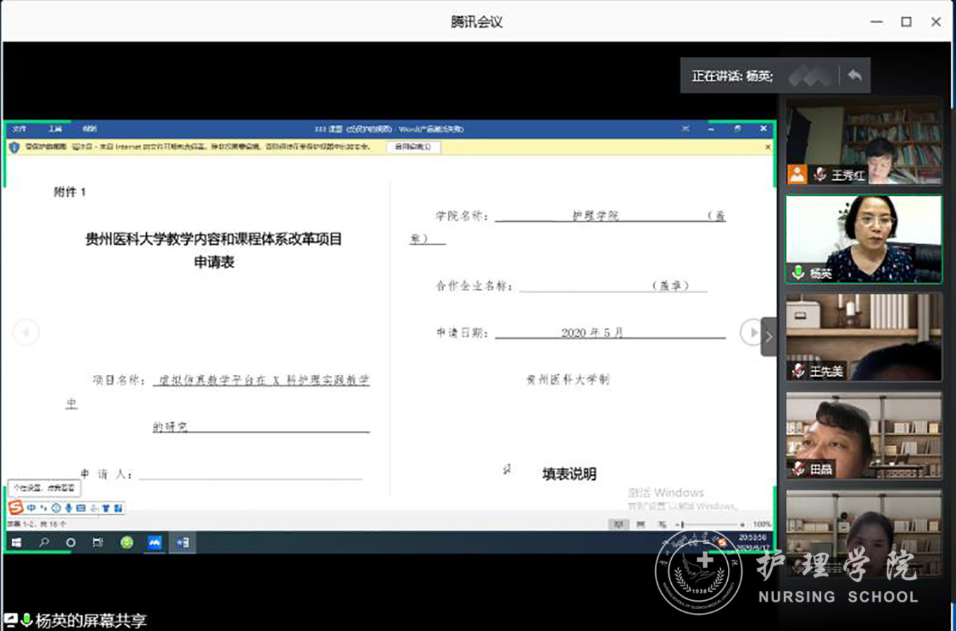 6月17日,太阳成集团tyc234cc通过腾讯会议举办了2019-2020学年第二学期护理沙龙活动——“课题申报书修改讨论会”,主要是针对前期收到的11份科研和教研申报书进行点评、修改和讨论,为下一步护理学科专项基金申报做准备。会议由公司党委副书记王秀红主持,全体专职教师参加了本次会议。公司党委书记杨英、副经理刘志燕、党委副书记王秀红三位领导担任评审专家,对提交的11份科研和教研课题申报书进行点评。三位专家分别从申报书的“立项依据”、“研究方案”、“研究基础”、“经费预算”、“如何进一步完善项目申报书”等方面做了全面细致而独特的点评和建议。最后,王秀红为本次沙龙活动做了总结,充分肯定了专职教师前期的辛苦付出,也希望老师们能够进一步打磨自己的标书,争取能在首次护理学科专项基金评审中脱颖而出。