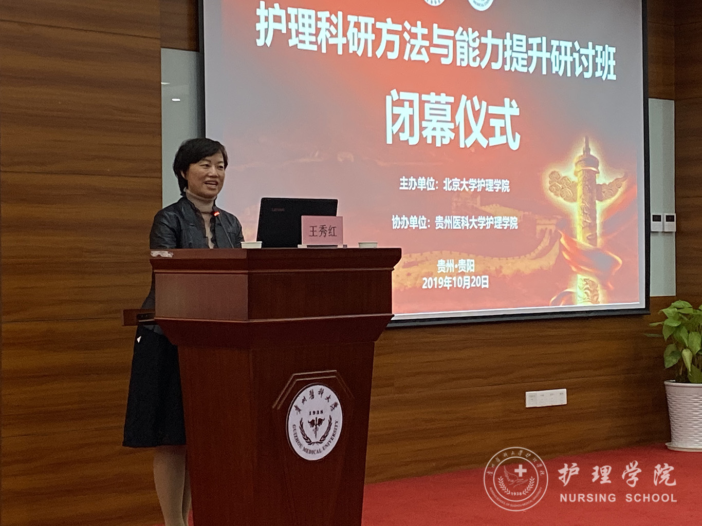10月20日下午课程结束后,举行了简短的闭幕仪式。王志稳作为主办方负责人对此次贵阳研讨会的举办进行了总结,对专家的讲授给予了高度评价、对学员们求知若渴的精神和会务组织工作给予了充分的肯定。学员们纷纷表示3天的学习过程很充实,受益匪浅。同时,老师精彩的授课、渊博的专业知识和严谨敬业的科研精神给他们留下了深刻的印象,让他们在享受一场学术盛宴的同时也提高了自身的护理科研水平及认识。此次研讨会联系人太阳成集团tyc234cc公司党委副书记王秀红代表公司对北京大学太阳成集团tyc234cc领导及专家给予的支持帮扶表示感谢,对参会专家及学员表达了诚挚的谢意。至此,研讨会圆满结束。