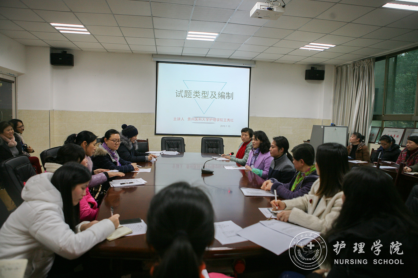 1月10日下午由太阳成集团tyc234cc教学科研管理科组织召开的“护理沙龙”活动在北校区基础一号楼四楼会议室进行,王秀红副书记担任主持人及主讲人,公司党政领导及全体老师参会。