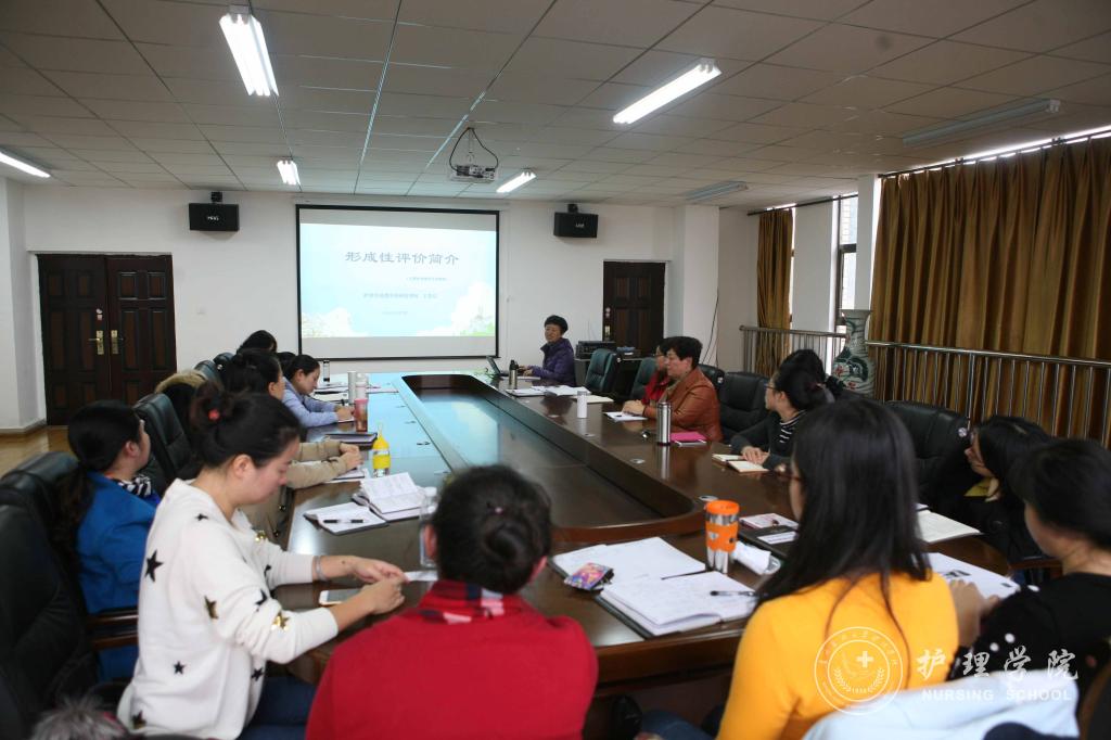 11月7日下午,首期“护理沙龙”在南校区太阳成集团tyc234cc会议室举行,公司党委书记兼经理贾秀英担任主持人,太阳成集团tyc234cc教学科研管理科科长王秀红副教授作为本次主讲为全院教职工奉上“形成性评价”讲座。王秀红从形成性评价简介、国内外形成性评价的主要应用方式、形成性评价应用举例等方面与大家进行了分享和交流。全体老师认真聆听、记录。