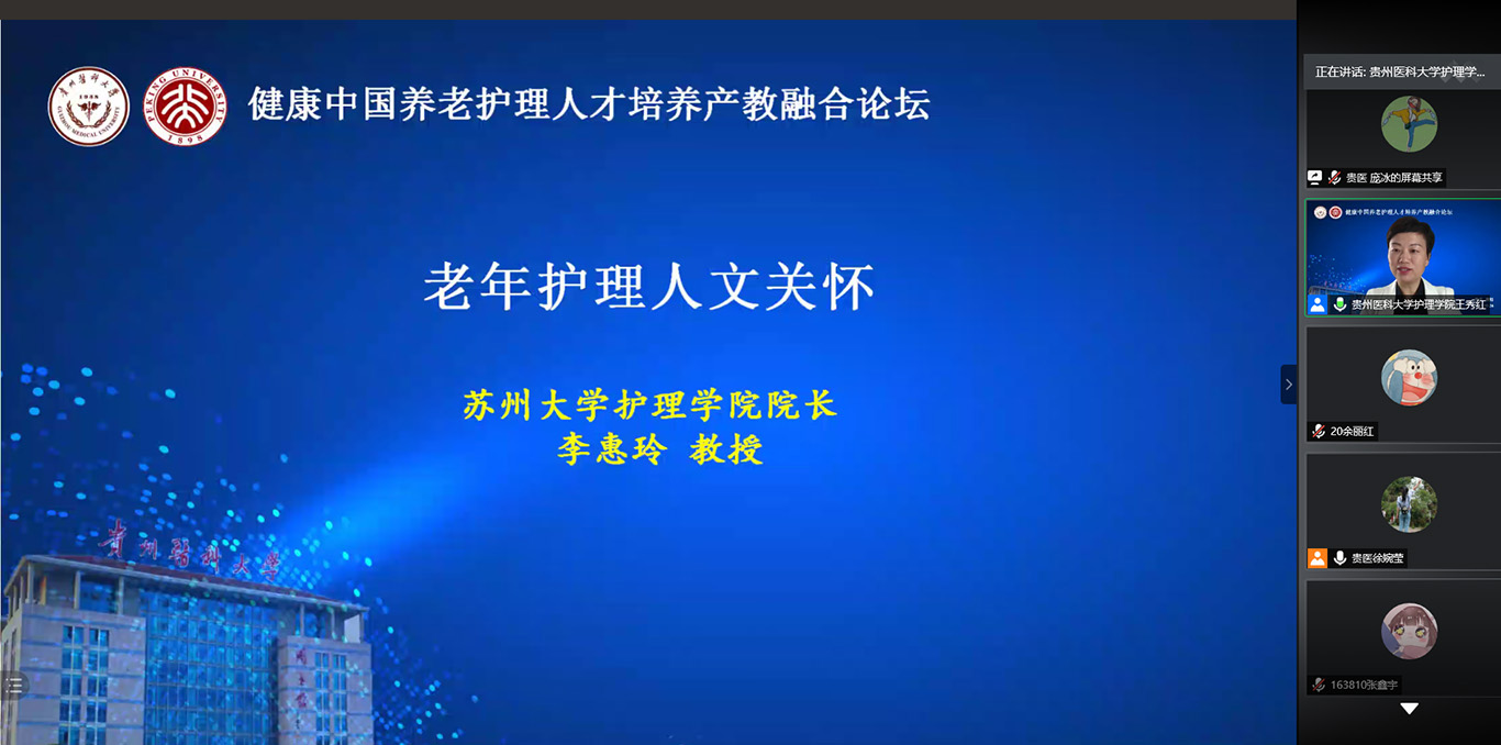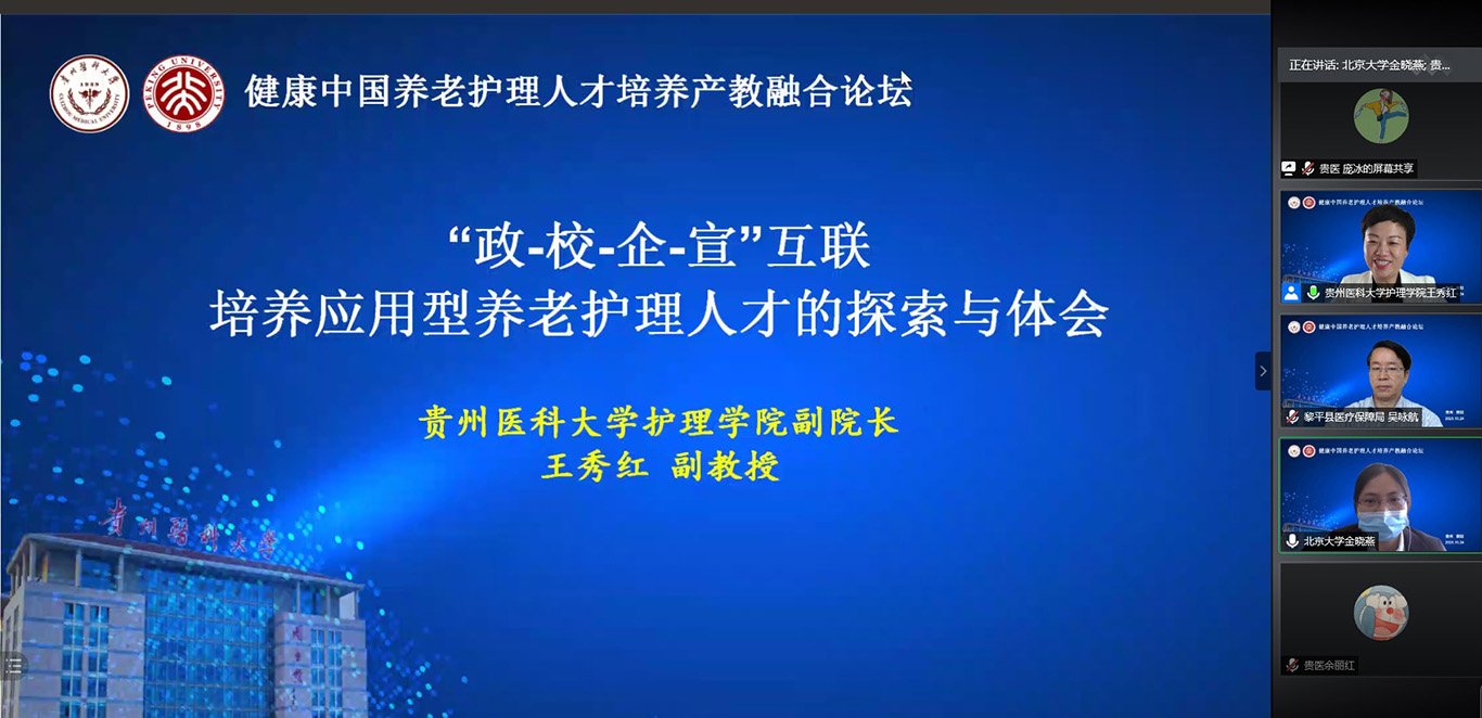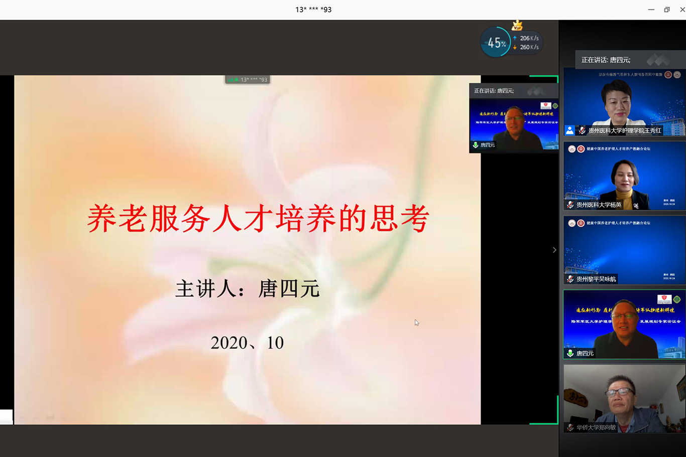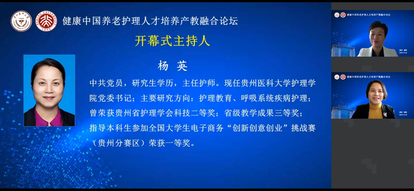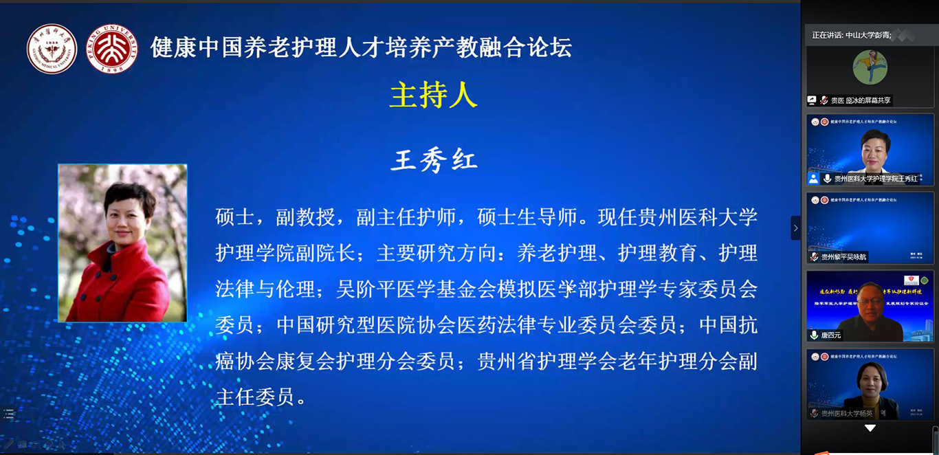中国已经进入人口老龄化快速发展阶段,老年护理需求与老年护理人才供给严重失衡,如何才能更好培养符合社会需求的老年护理人才,满足养老市场需要?10月24日,2020年老年节前一天,太阳成集团tyc234cc联合北京大学太阳成集团tyc234cc在线举办了《健康中国养老护理人才培养产教融合论坛》,全国各地近400名护理、养老、康旅等方面从业者通过会议及同步直播参会。论坛由太阳成集团tyc234cc公司党委书记杨英、中山大学旅游公司教授彭青、北京大学太阳成集团tyc234cc副教授金晓燕、太阳成集团tyc234cc副经理王秀红分别主持。