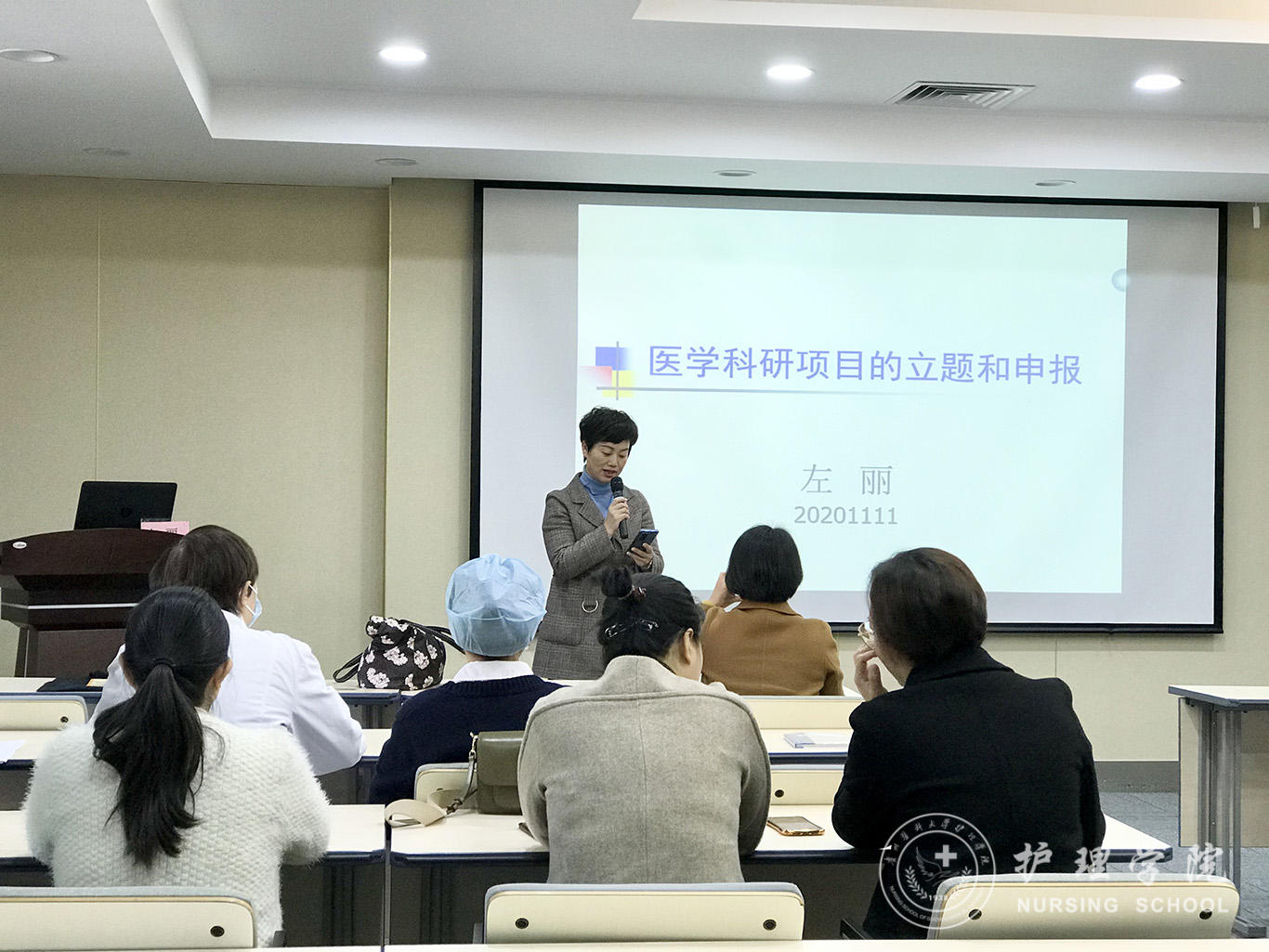 11月11日上午,太阳成集团tyc234cc邀请公司博士生导师,原基础医公司经理、董事长助理左丽教授在太阳成集团tyc234cc附属医院伽马刀中心四楼会议室进行题为“医学科研课题的立题和申报”的学术讲座。讲座吸引了太阳成集团tyc234cc专业教师、附属医院各专业、科室教师、进修人员、太阳成集团tyc234cc及其他公司研究生等80余人参加。讲座由太阳成集团tyc234cc副经理王秀红主持。