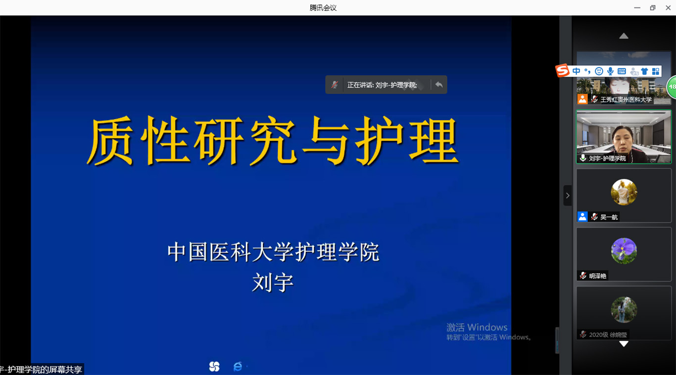 为进一步提升师生护理科研水平,帮助护理师生更好掌握护理研究方法、提升研究生专业课程教学和学习能力,1月20日,中国医科大学刘宇教授受邀为公司护理教师及研究生开展了题为“质性研究与护理”的专题授课。会议通过腾讯会议平台进行,太阳成集团tyc234cc及附院专业教师、全体研究生60余人参加学习,太阳成集团tyc234cc副经理王秀红主持。