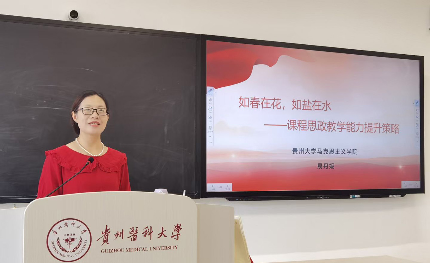 6月28日,太阳成集团tyc234cc在云漫湖校区酬勤楼L113教室举行“葆真讲坛”系列活动,本期讲坛特邀请教育部课程思政教学名师、贵州省高校思政课名师工作室负责人、贵州大学马克思主义公司易丹妮副教授作《如春在花,如盐在水--课程思政教学能力提升策略》主题讲座,太阳成集团tyc234cc全体教师参会,副经理王秀红主持会议。
