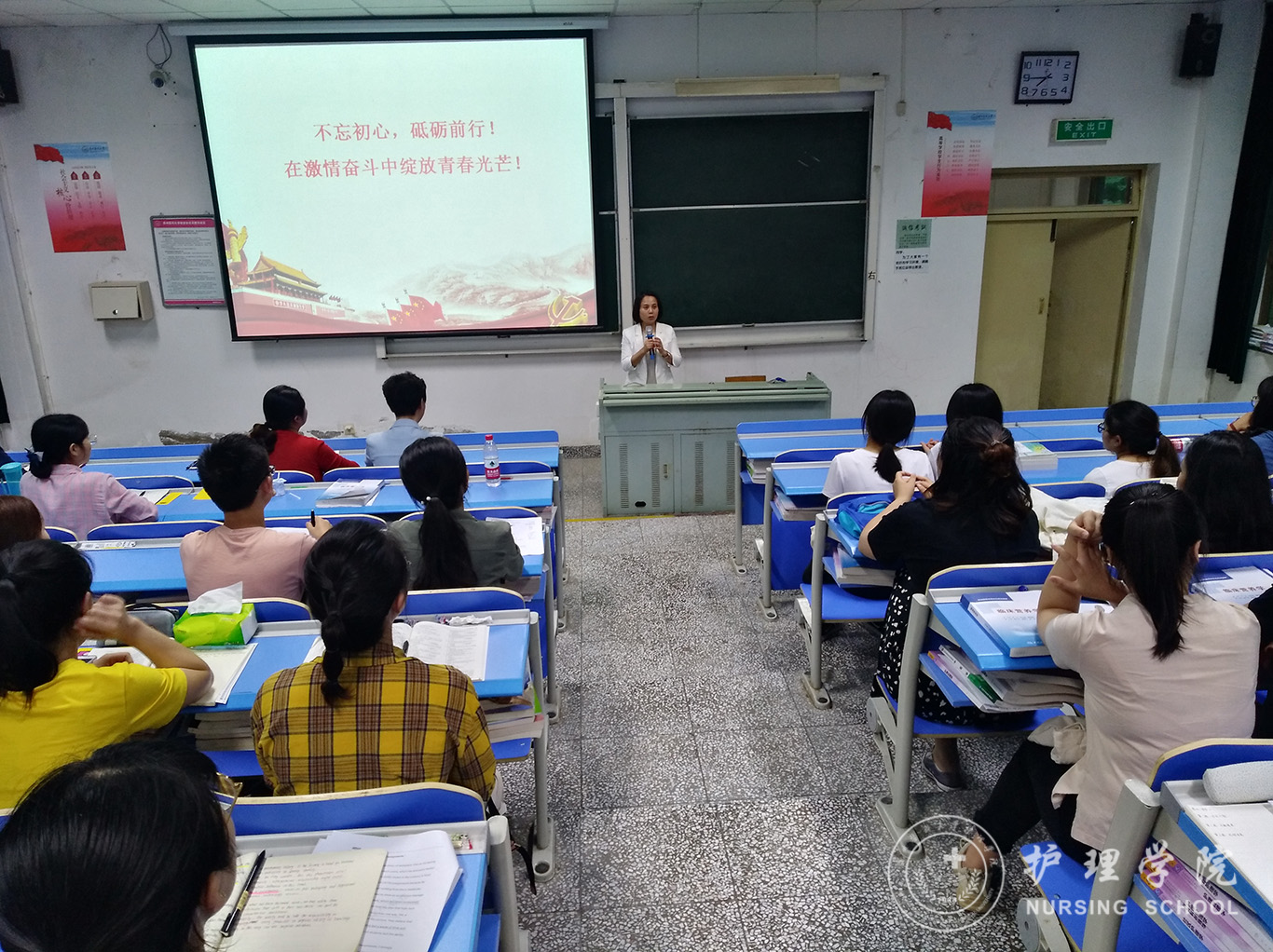 6月12日,太阳成集团tyc234cc员工第一、第二党支部在北校区3301教室开展毕业生党员最后一次党课活动,公司党委副书记王秀红为毕业生党员讲授了题为《不忘初心,在激情奋斗中绽放青春光芒》的党课。公司党委书记杨英、员工科科长曾敏及全体本科生、研究生党员参加本次活动,员工第二党支部书记马景瑶主持。
