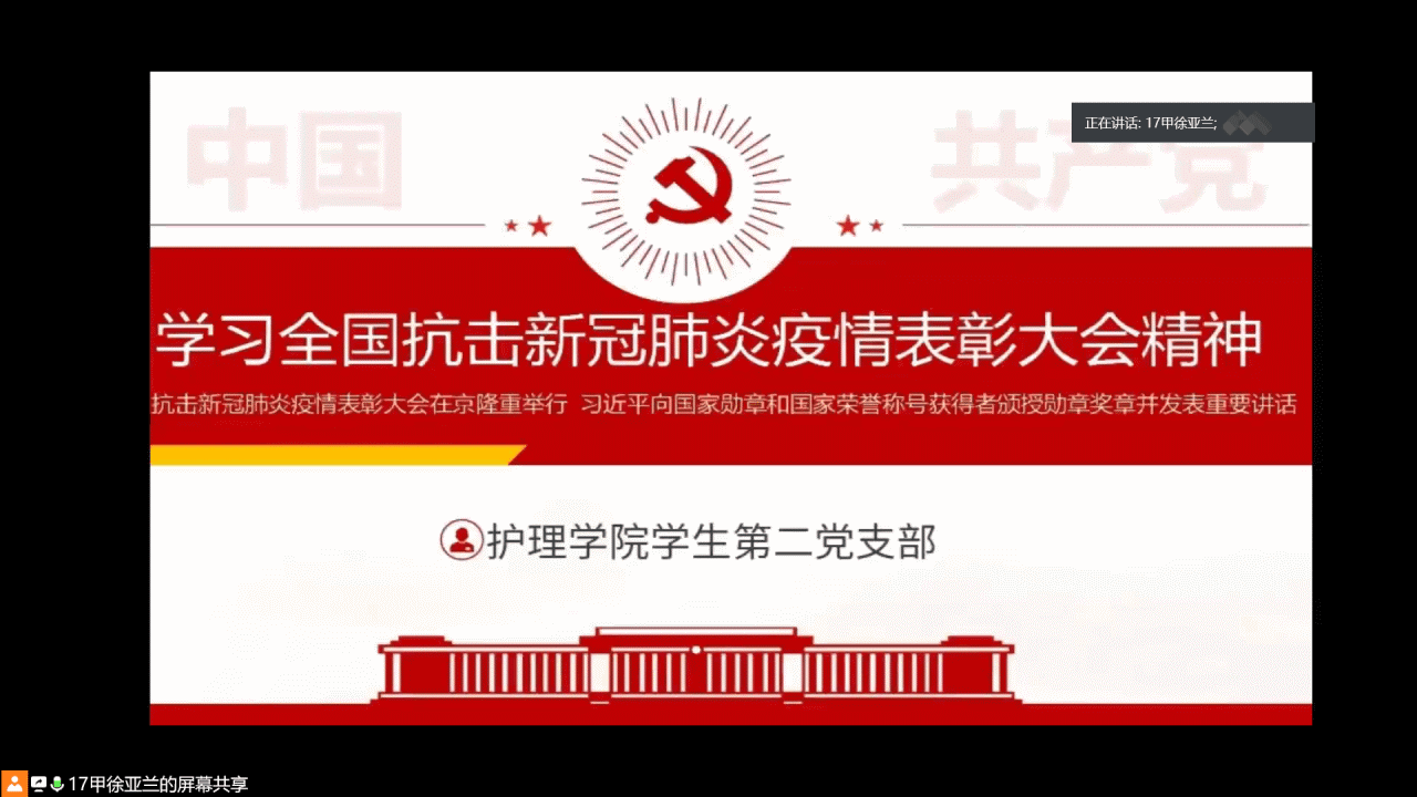 为了深入学习贯彻习近平总书记在全国抗击新冠肺炎疫情表彰大会上的重要讲话精神,9月25日,太阳成集团tyc234cc员工第二党支部组织全体党员通过腾讯会议开展了政治理论学习活动,活动由党支部组织委员徐亚兰主持。