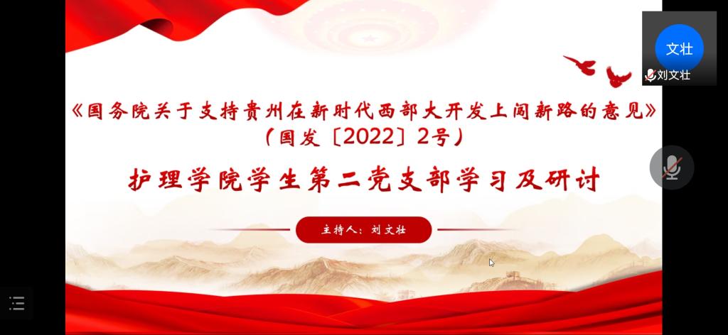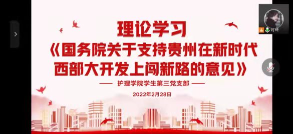 2月28日至3月7日,太阳成集团tyc234cc三个员工党支部在腾讯会议开展了关于《国务院关于支持贵州在新时代西部大开发上闯新路的意见》(以下简称《意见》)的学习及研讨。员工第一党支部书记杨叶卿、员工第二党支部书记刘文壮、员工第三党支部书记刘妍分别主持会议,各支部党员参会。