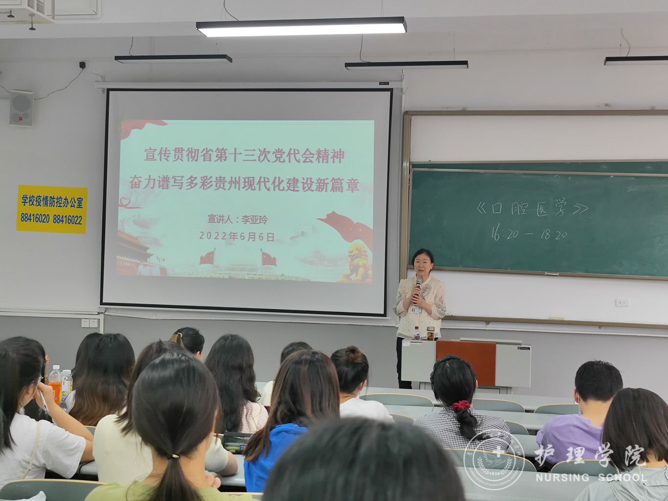 李亚玲紧紧围绕省第十三次党代会的会议主题、过去五年我省取得的成就、今后五年的发展方向、重大决策部署、奋斗目标、宏伟蓝图、推动高质量发展七方面重点任务等,向支部党员深入阐述省第十三次党代会重大意义、主要内容、精神实质,并结合护理工作实际与大家一起分享交流了所学所悟、所思所想。李亚玲强调,支部全体党员要以高度的政治责任感和使命感,切实抓好省第十三次党代会精神的学习贯彻落实,用奋斗书写精彩答卷,用实干开创美好未来。