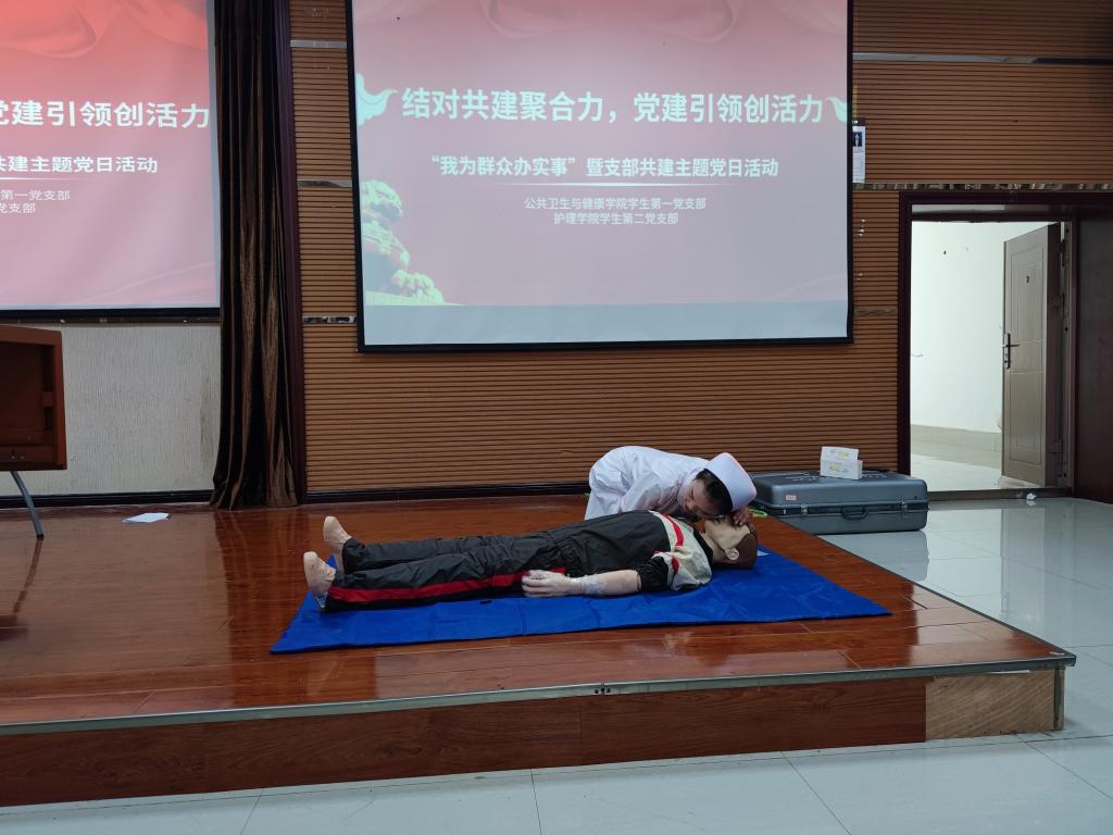 活动中,郝雪君以“努力成长为德智体美劳全面发展的社会主义建设者和接班人”为题,带领与会党员认真学习了《习近平著作选读》,为开展本次主题党日活动打下良好思想基础。随后,公司党员代表系统地为大家讲述并演示心肺复苏技术(CPR)相关的急救知识、成人实施心肺复苏技术的流程、方法及注意事项;公共卫生与健康公司党员代表讲解了结核病主要症状、传播途径、易感人群、防治知识等,帮助大家进一步了解疾病预防措施以及结核病治疗的有关政策。最后两个支部共同进行了红色诗词诵读及红色歌曲演唱,旨在传承红色精神、发扬红色文化,增进对党的忠诚与热爱。