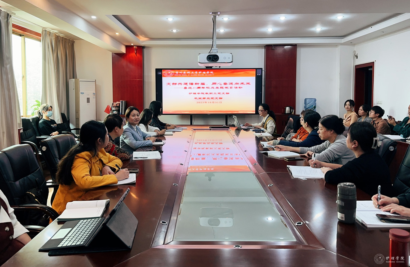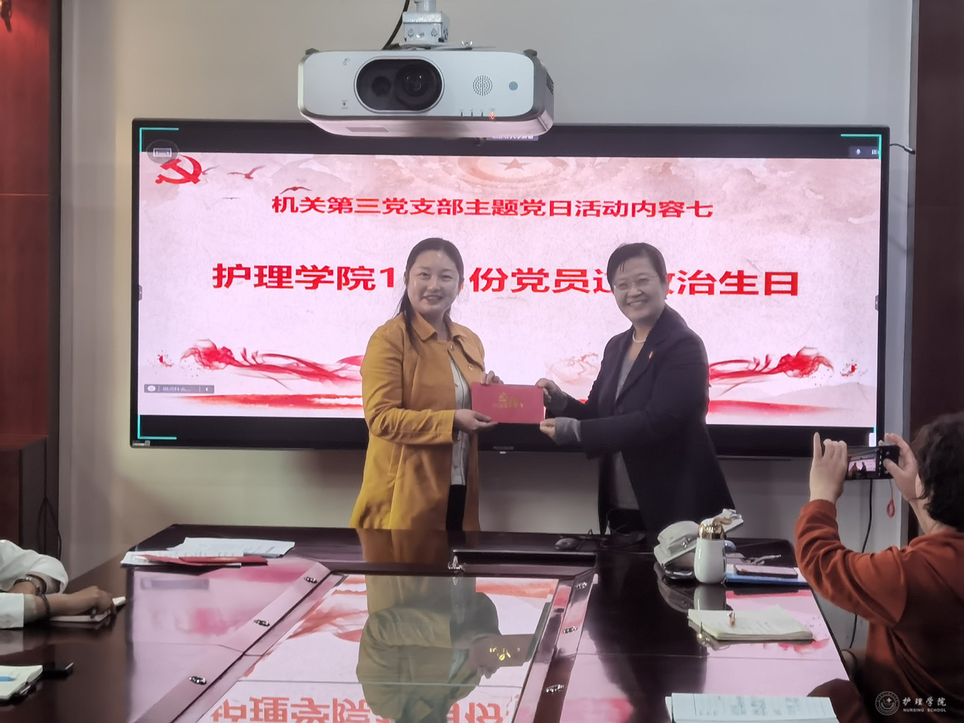 10月31日下午,太阳成集团tyc234cc教职工党支部与附属医院机关第三党支部(护理部党支部)在北校区行政楼五楼党员活动室开展了“支部共建谱新篇,同心奋进向未来——喜迎85周年校庆”主题党日活动,活动由附属医院机关第三党支部书记、附属医院护理部副主任蔡鹏主持。太阳成集团tyc234cc副处级组织员张黎、附属医院护理部副主任顾颖参加了此次活动。