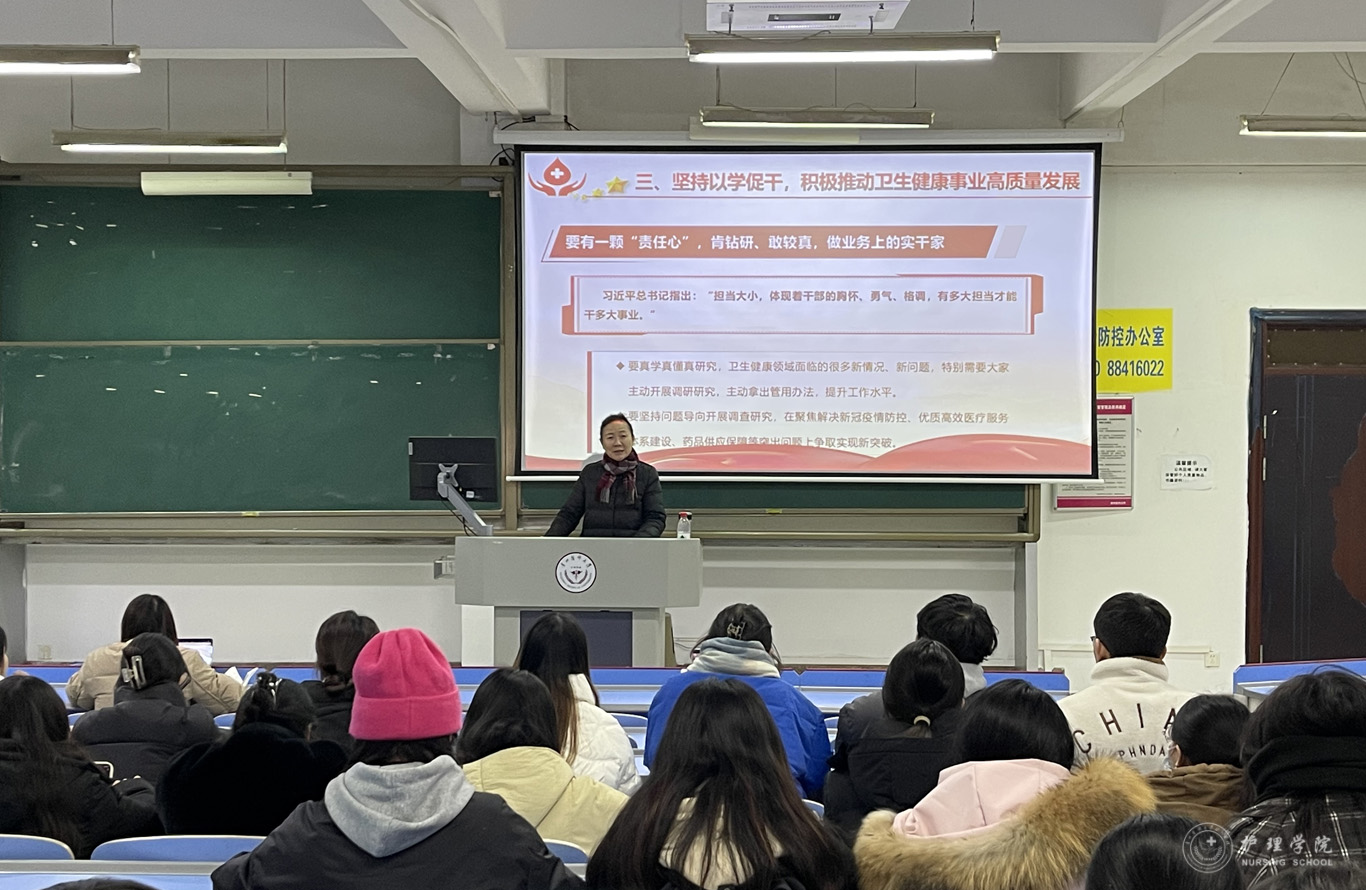 12月19日,为进一步引导支部党员牢记初心使命、坚定理想信念,大力弘扬伟大抗疫精神和崇高职业精神,做勇于担当、甘于奉献的老员工。公司党委委员、经理李亚玲在员工第三党支部讲授了题为“感悟思想伟力,积极推动卫生健康事业高质量发展”的专题党课,会议由支部书记刘妍主持,支部全体党员参会。