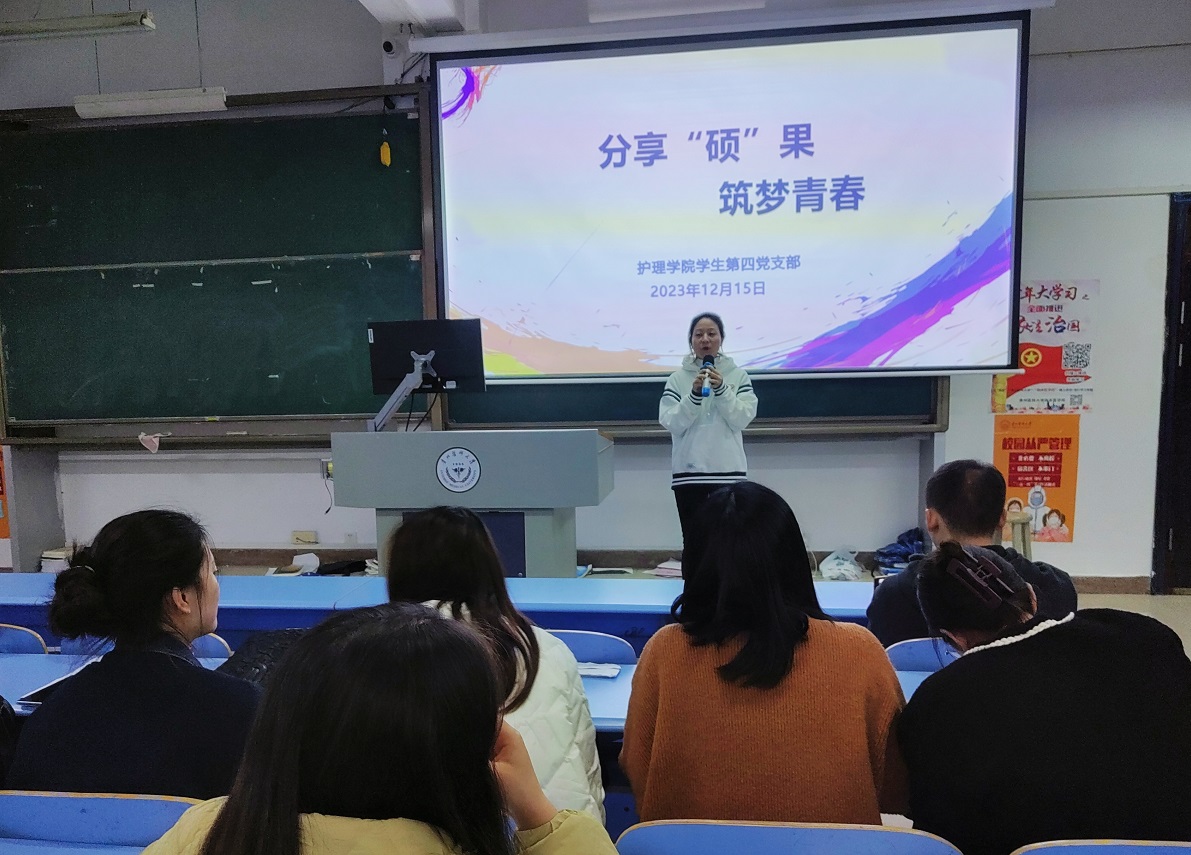 12月25日下午,太阳成集团tyc234cc员工第四党支部在北校区基础楼2202教室开展了以“分享‘硕’果,筑梦青春”为主题的党日活动,公司副处级组织员张黎及员工第四党支部全体党员参加,活动由员工第四党支部书记殷艳主持。