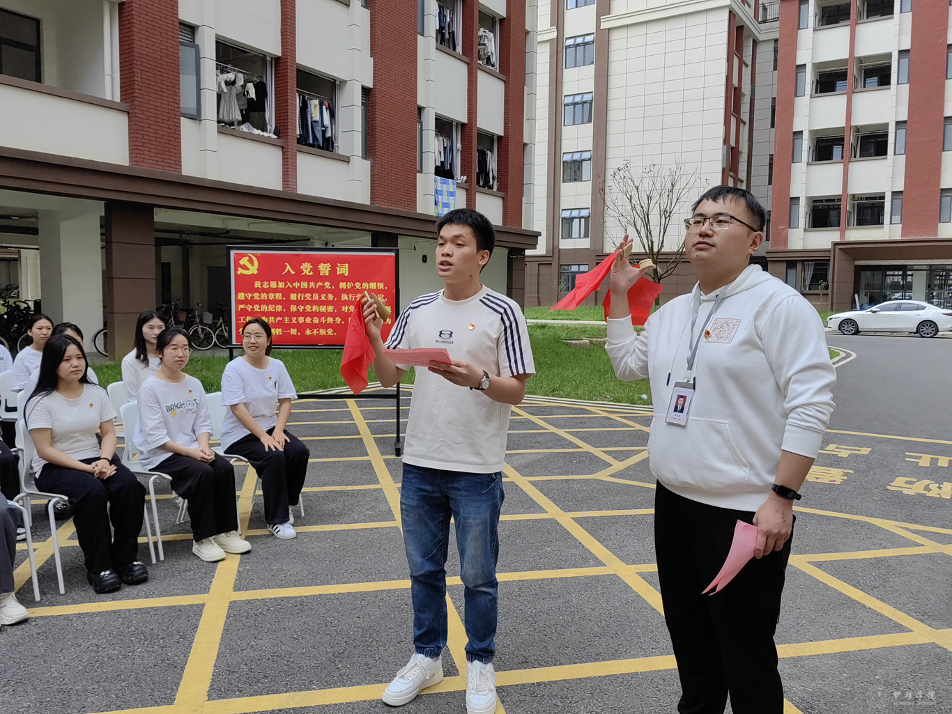 活动中,公司党委副书记兼纪委书记何为带领新发展党员面向党旗庄严宣誓,以铿锵有力的宣誓声表达了对党的无限忠诚和为共产主义事业奋斗终身的坚定决心。随后,党委员工工作部(员工处、武装部)嘉宾及公司教师党员代表为新发展党员佩戴了党员徽章,新发展教师党员代表袁明、员工党员代表朱月成分别作了表态发言。公司党委书记杨英对新发展党员表示了衷心的祝贺,她指出,全体新发展党员要坚定理想信念,在攻坚克难中磨砺专业本领,在深学细悟中增长知识才干,做一名在学习和工作中充分发挥先锋模范作用的合格党员,在实现第二个百年奋斗目标的历史伟业中贡献自己的智慧和力量。