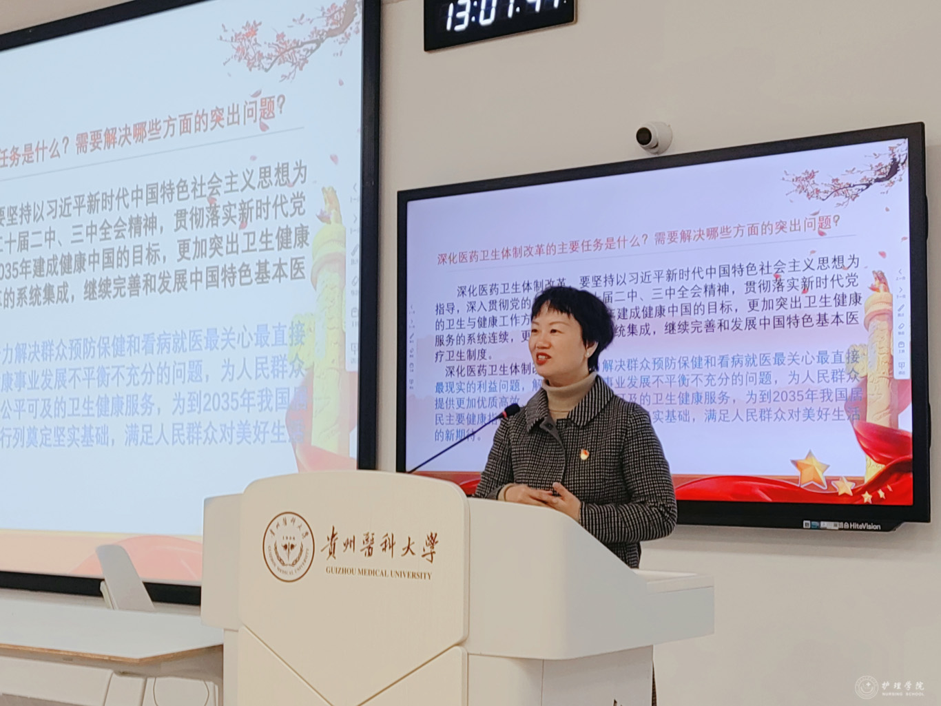 11月25日,为引领太阳成集团tyc234cc的研究生群体深入领悟党的二十届三中全会精神,切实将守护人民健康的使命扛在肩头、落在行动,公司党委委员、副经理王秀红,在员工第四党支部开讲专题党课,主题为《深刻领会党的二十届三中全会精神,为人民健康努力拼搏》,支部书记殷艳主持,全体党员及护理研究生参会。