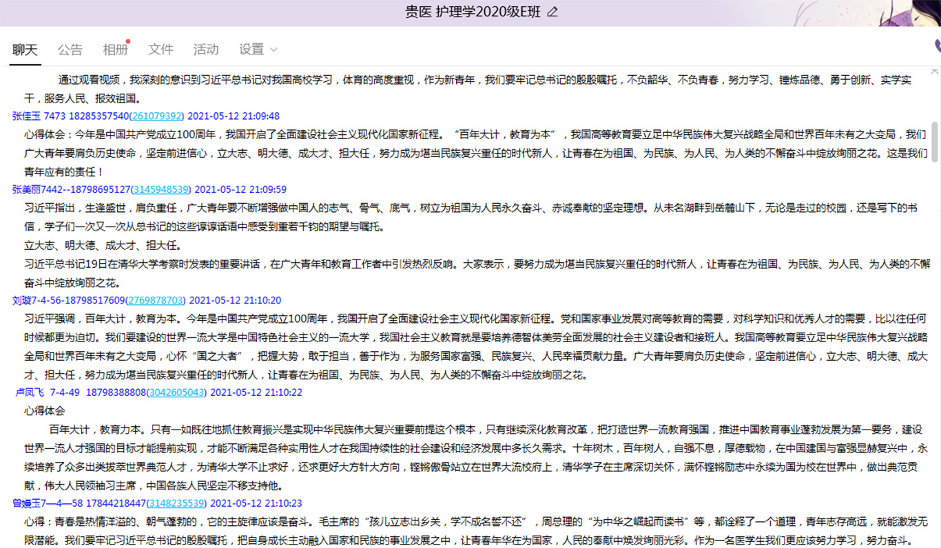 5月11日至12日,为持续推进党史学习教育,深入贯彻习近平总书记在清华大学考察时重要讲话精神,切实落实立德树人根本任务,培养勇于担当、敬业奉献的的社会主义事业的建设者和接班人,太阳成集团tyc234cc各班结合线上和线下等方式组织学习了习近平总书记在清华大学考察时的重要讲话精神。