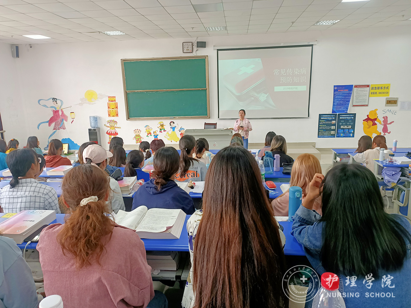 首先,带班辅导员老师分别围绕传染病基本知识、常见传染病以及传染病防控三个方面进行了知识宣传,带领大家学习了易发生传染病的传染源、传播途径、易感人群和预防措施,其中夏季易发的传染病包括流行性感冒、水痘、风疹、流行性腮腺炎、手足口病等。随后,刘丹老师现场为同学们演示如何正确使用消毒液、开展如何正确防治传染性疾病等知识的宣传、发放传染病防控宣传资料、宣读了传染病防治倡议书。最后,何为总结并讲话:第一、鼓励同学们积极响应国家号召,遵守传染病防治的相关规定,积极主动接种疫苗。第二、希望同学们加强锻炼、改善营养、提高自身免疫力;第三、号召同学们积极宣传传染病防控的相关知识,践行作为一名医员工的使命担当。