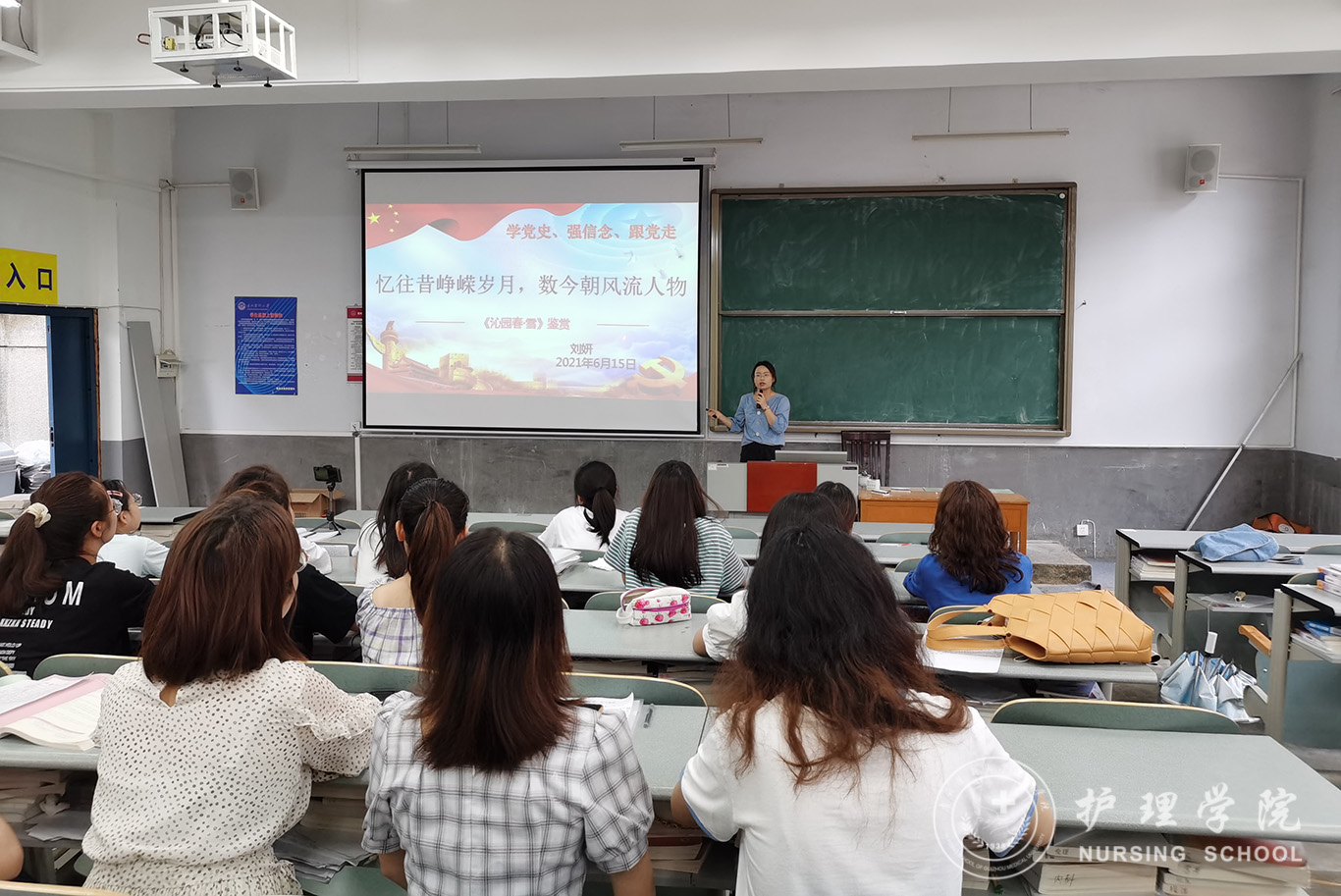 刘妍介绍了《沁园春·雪》作者毛泽东概况,重点讲到毛泽东带领中国人民经过了长期的革命斗争,赢得民族独立和人民解放,创建了新中国,带领中国人民走上了社会主义现代化的道路,开创了人民当家作主的新时代。概括了《沁园春·雪》是结束了空前壮举长征,一举粉碎了国民党反动派三次“围剿”,正欲挥师东征抗日之际,在中国北方所见的雪。随后对文章上下片分别做出赏析,点出“数风流人物,还看今朝”的主题。刘妍讲到,我泱泱中华,一撇一捺都是脊梁。并举例介绍了袁隆平、吴孟超、黄大年、张桂梅及“贵医抗疫天团”等为“今朝中国”贡献了“今朝力量”的风流人物。刘妍指出,今年已是建党一百周年,党史学习正火热进行中,全党同志要铭记习近平总书记在党史学习动员大会上重要讲话精神,做到学史明理、学史增信、学史崇德、学史力行,学党史、悟思想、办实事、开新局。