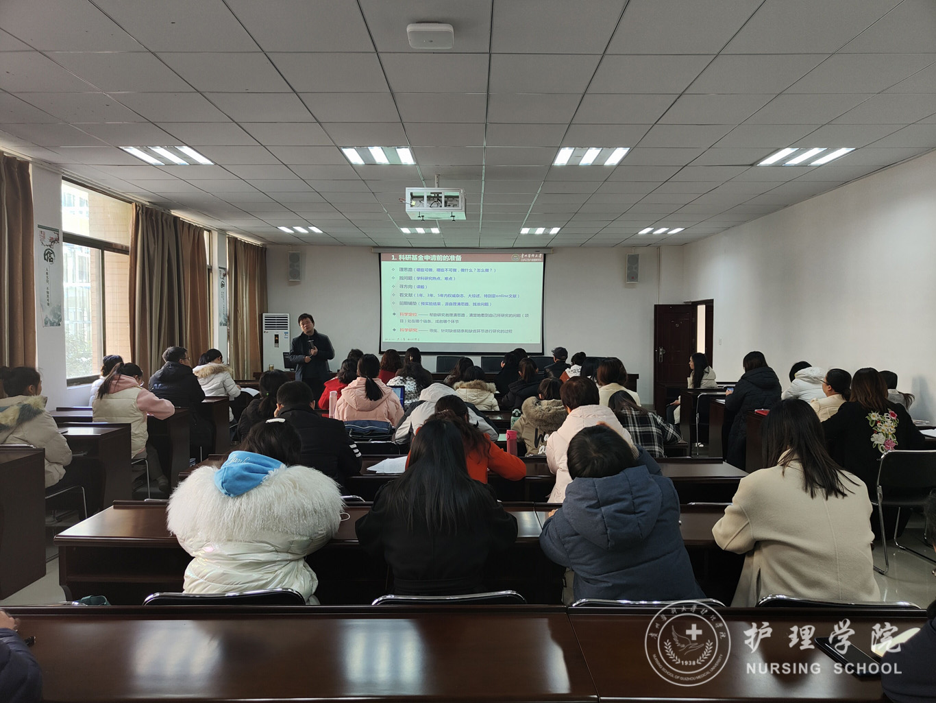 其次,针对太阳成集团tyc234cc教师科研能力较弱的短板,特别邀请公共卫生与健康公司经理洪峰讲授了题为《如何写好一份科研项目申请书》的讲座,洪峰从申请课题前期准备、选题、立项依据、可行性分析等多个方面进行了关于国自然基金申报的经验分享,同时双方老师就此进行了深入的研讨交流,洪峰表示,将会对太阳成集团tyc234cc今年申报国自然基金的老师标书进行指导。